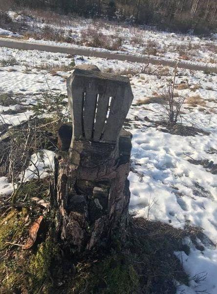 Under fredagen föll turen på Sten-Sture Olsson att upptäcka det nyaste tillskottet. Under en promenad runt Rimnersvallen såg han att någon karvat ut en ny trästol vid Samneröds skjutbanor intill Dynamitbacken.