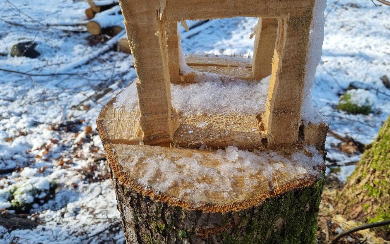 – Den såg väldigt nygjord ut, det låg fortfarande sågspån på marken när jag upptäckte den i skogsbrynet, säger han.