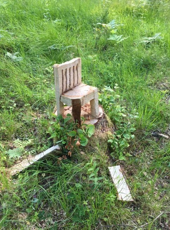– Den är pytteliten. Stubben som den står på är bara 15-20 centimeter i diameter, och stolen inte mer än 35-40 centimeter hög, berättade Inger då.