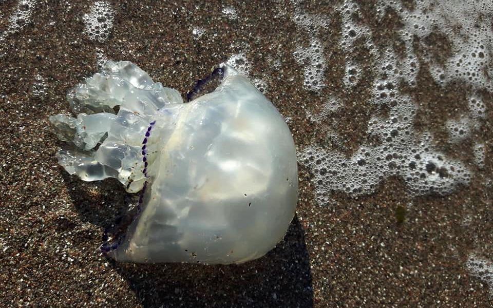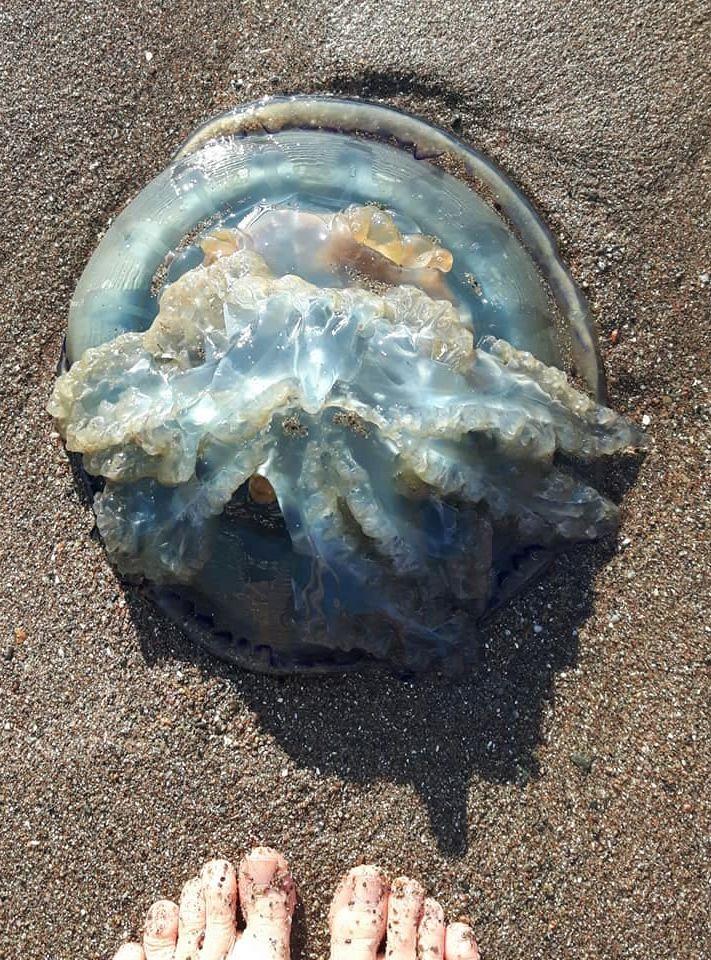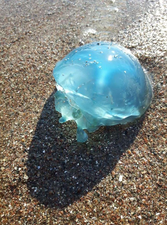 – Jag såg den väldigt blåa först då den lyste så starkt. Men jag trodde att det var plast som flutit i land. Därför tänkte jag plocka upp det innan jag skulle hem. Jag kunde aldrig gissa att det var en manet, säger hon.